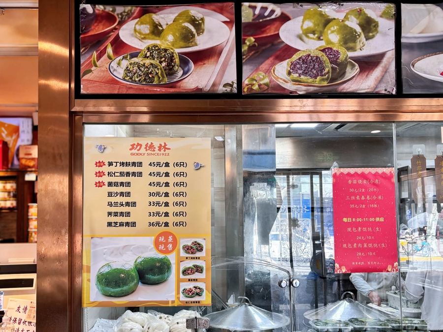 如今,不少市民足不出户也能轻松买到老字号青团。除传统电商平台外,今年在抖音、小红书、视频号等平台的官方旗舰店和直播间,均可下单功德林净素青团。新老食客线上线下同步,皆可体验这份传承与创新交织的春之美味。